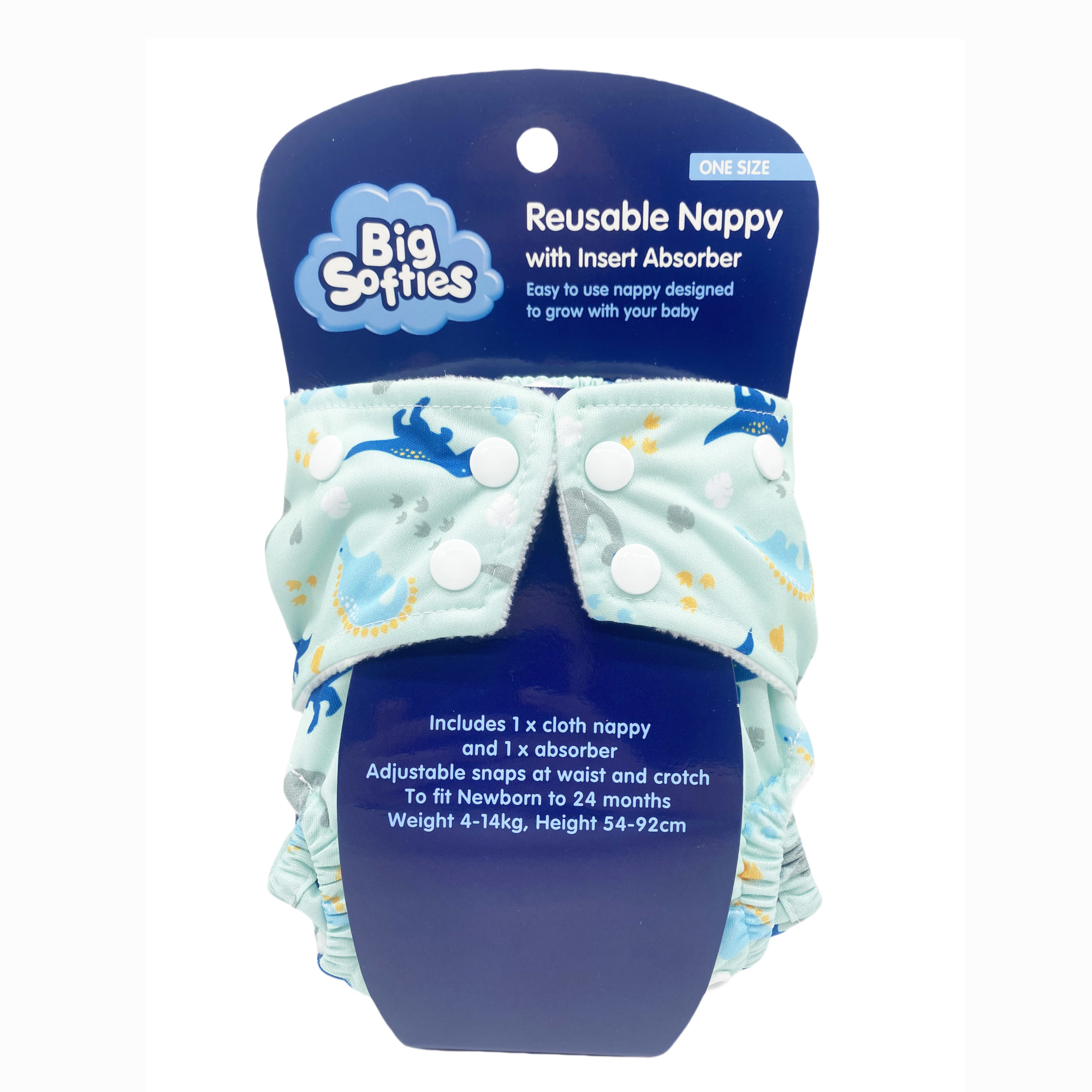 Big Softies Reusable Nappy With Insert Absorber – Dino